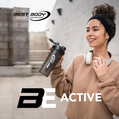 Best Body Nutrition Eiweiß Shaker schwarz – 600 ml Protein Shaker mit Sieb & Mess-Skala – auslaufsicher – spülmaschinengeeignet – BPA-frei – für klumpenfreie Proteinshakes