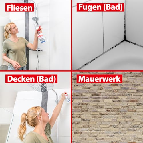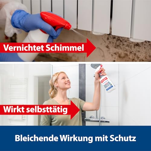 Die chlorbasierte Wirkungsformel lässt Pilzansätze und Stockflecken verschwinden und eignet sich besonders für Bad, Küche und Keller, Garage, Sauna und Schwimmbad