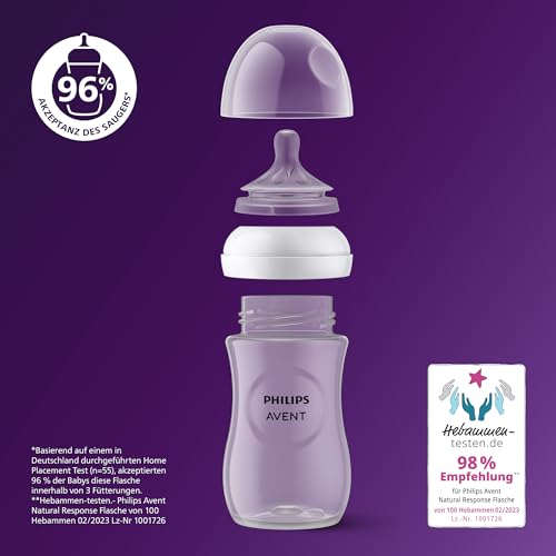 Philips Avent Natural Response Babyflasche mit 260 ml mit Saugern für mittleren Nahrungsfluss (Durchflussrate 3), 3er-Pack, SCY903/03