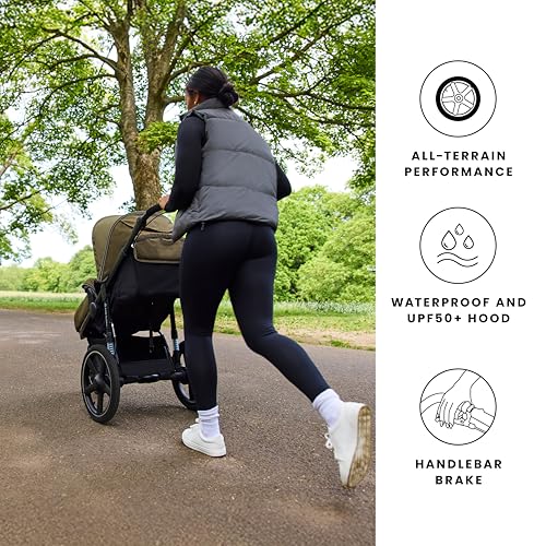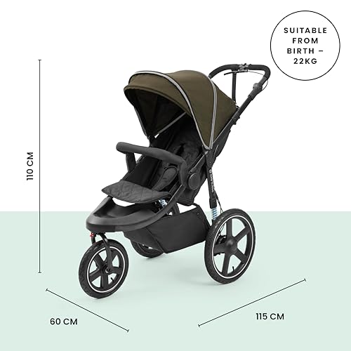 Ickle Bubba Venus Jogger Pro 3-Rad-Kinderwagen, Geländegängig, Luftreifen, UPF50+ Haube, 0-22 kg (Wald)