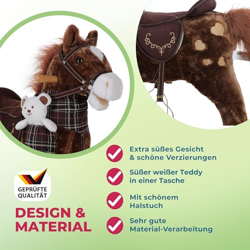 SCHAUKELTIER: Das Schaukelpferd ist aus extra weichem Plüsch und lädt Kleinkinder sowie Babys mit seinem freundlichen Gesichtsausdruck zum Schaukeln im Kinderzimmer ein – Der kleine Teddy ist auch dabei, so ist Riesenspaß garantiert!