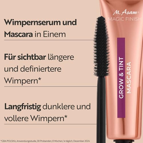 M. Asam MAGIC FINISH Grow & Tint Mascara Deep Black (12ml) – Mascara mit Wachstumsserum & Tönungseffekt, Wimpernpflege für mehr Länge & Volumen, Für definierte & natürlich dunklere Wimpern, Vegan