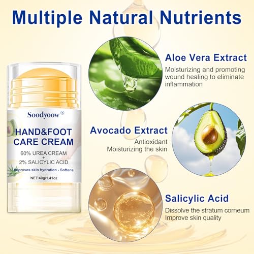 Soodyoow Fußcreme mit 60% Urea & Salicylsäure – Pflege bei Hornhaut & Trockener Haut, 2x40g