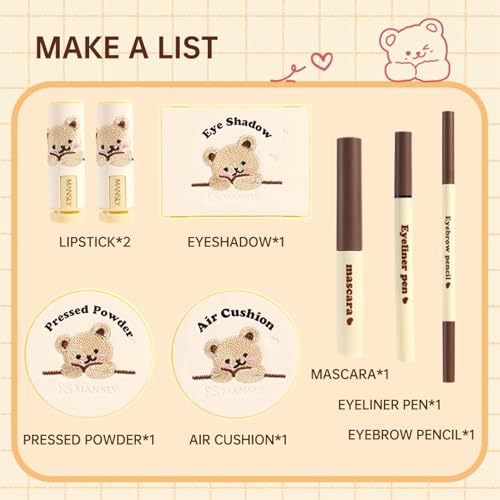 All-in-One Make Up Set, 8 Stück Schminke Set, Make-up Sets für Frauen Mädchen, Schmink Geschenkset mit Eyeliner, Lidschatten Palette, Mascara, Air cushion und Lipstick, Perfekte Geschenk für Frauen