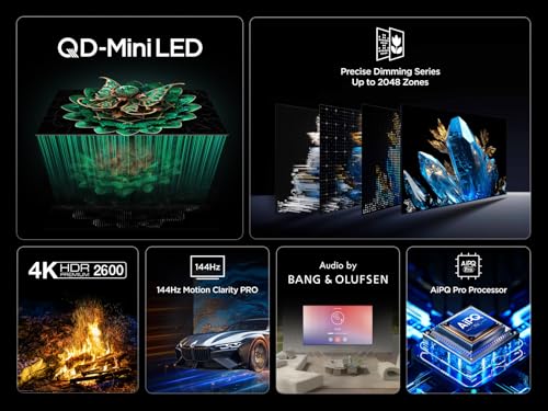 Mini-LED QLED Display mit 4K HDR Premium – intensive Farben & extremer Kontrast Das Mini-LED-Panel mit QLED-Technologie bietet besonders hohe Helligkeit, tiefe Schwarzwerte und brillante Farben – dank präziser Zonensteuerung und 97 % DCI-P3 Farbraumabdeckung. 4K HDR Premium sorgt für außergewöhnliche Detailtiefe und realistische Lichtverläufe.