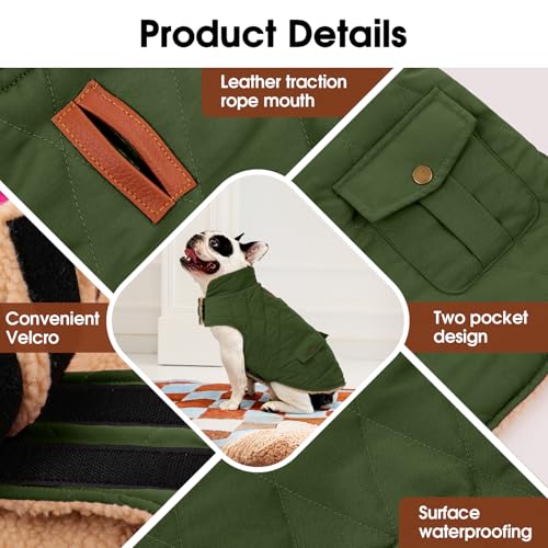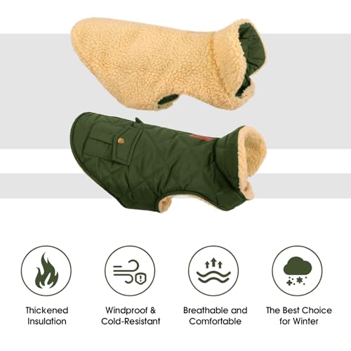 CITÉTOILE Wintermantel Hundemantel, Warme Winterjacken mit Fleece für Hunde,Hundejacke Hundekleidung Hundepullover Dog Coat mit Geschirr Loch für Chihuahua Dackel, Grün, M