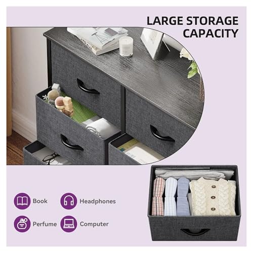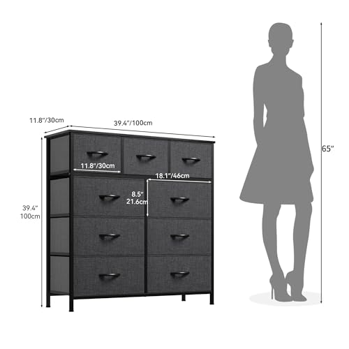 This 9-drawer fabric dresser combines efficient storage functionality with a modern, minimalist look, perfect for home use. The organizers separate and store all your wardrobe and essentials, allowing you to easily find and instantly grab what you need. Nine removable drawers separate and organize clothes and accessories in one convenient place. They provide ample space to store out-of-season clothes, shoes, purses, scarves, bedding, and more. In addition, the tabletop can become an eye-catching spot to display vases, family photos, and other decorative items. The storage box organizers are compact and lightweight, suitable for small spaces, and transporting is a breeze.