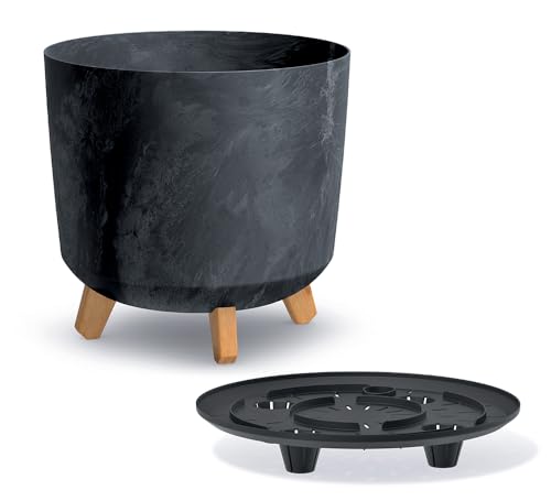 Tymar Übertöpfe groß mit Füßen, Blumenübertopf, Blumentopf Gross, Blumenkübel matt, Pflanzkübel für Außen und Innen ((2pack) Beton Anthrazit ; Höhe 28,5 cm/ø 30 cm)