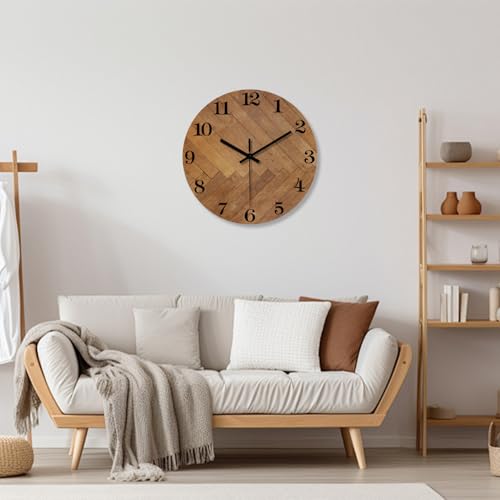 【Rustikaler Stil】 Diese wanduhr holz ist aus hochwertigem MDF-Faserboard gefertigt (kein echtes Holz). Kein Rahmen, Glas und Sekundenzeiger. Dies macht das Gesamtdesign der Wanduhr sehr sauber und ordentlich, die sich für die Dekoration im Wohnzimmer, Schlafzimmer und Essbereich eignet und Ihrem Zimmer einen attraktiven und schlichten Stil verleiht.
